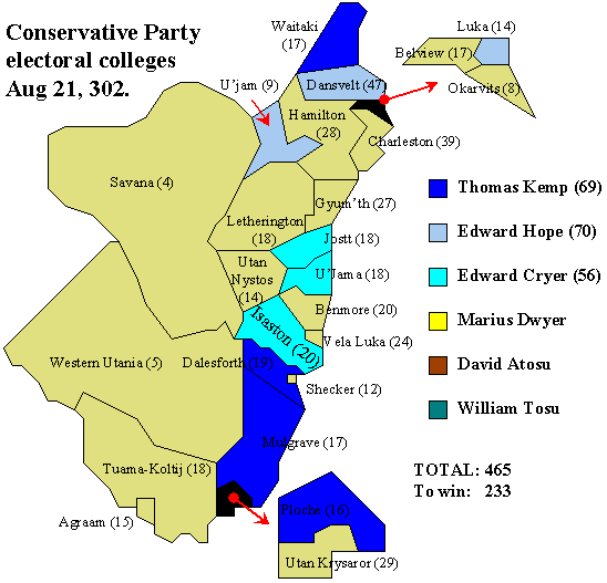 a total of 69 Electoral Branch Votes, ahead of Governor Cryer's 56 votes. Governor Hope